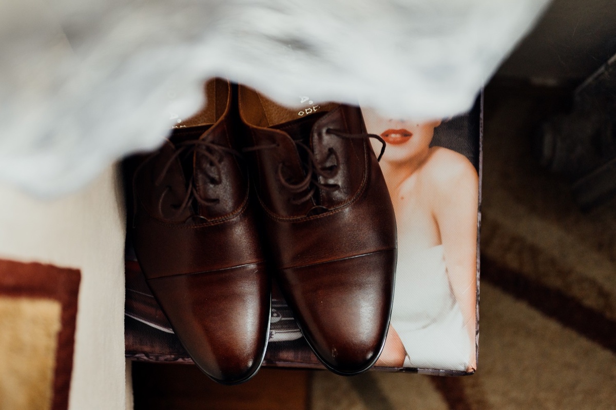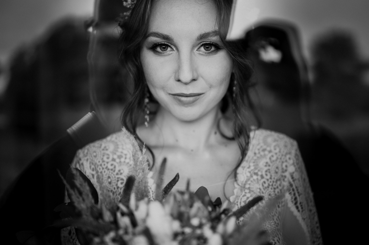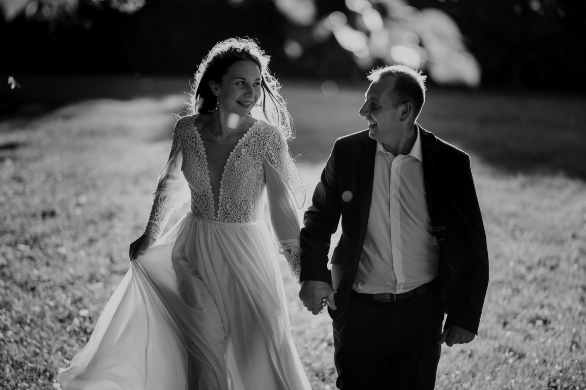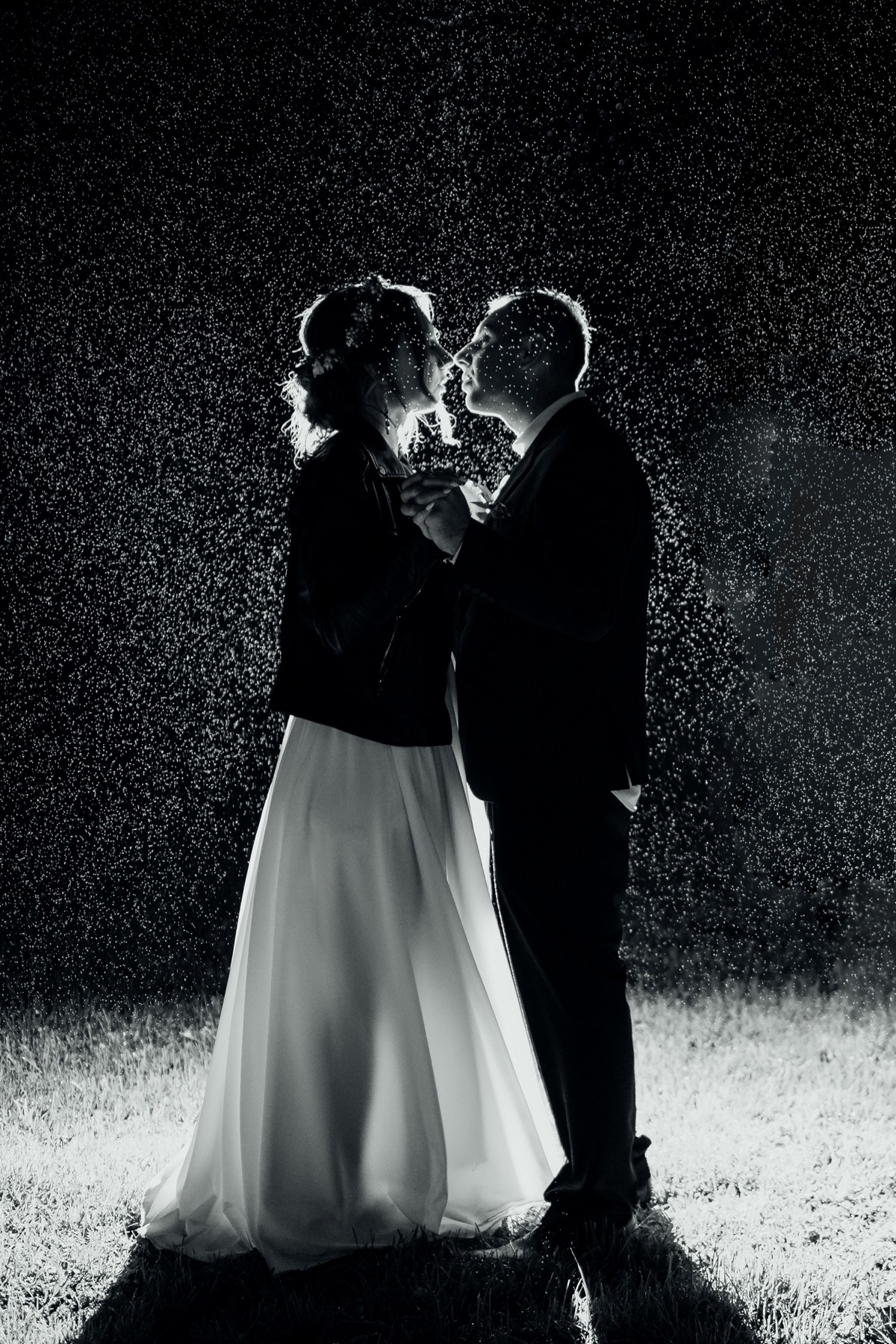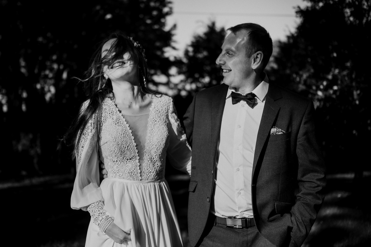 Deszcz nie przeszkodził, a nawet pomógł wykonać kończące reportaż ślubny zdjęcie.