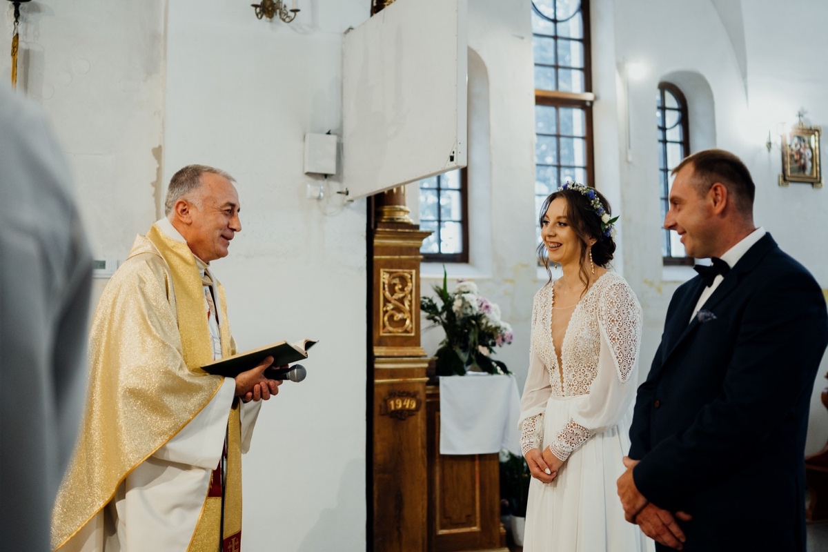 Piękna ceremonia, życzenia dzięki uprzejmości proboszcza wewnątrz świątyni i już na sali pod opieką Dj Virus Team 🎉