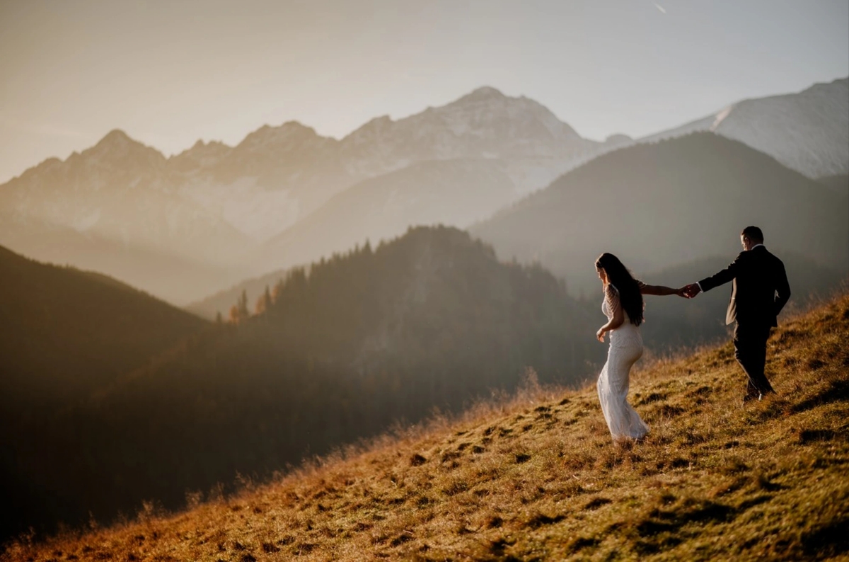 Cudnym zwieńczeniem tej historii była sesja ślubna w Tatrach, a dokładniej na Rusinowej Polanie, gdzie mieliśmy możliwość podziwiać przepiękne widoki o wschodzie Słońca.