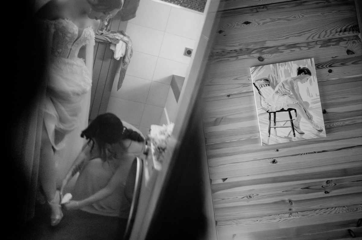 Tradycyjne przygotowania w osobnych domach to świetna okazja, nie tylko do zdjęć, ale i stanowi super czas zanim Para Młoda nawzajem ujrzy się w wydaniu „na gotowo” do ślubu. W otoczeniu najbliższych czy to rodziny, czy przyjaciół to doskonały moment dla fotografa, aby wychwytywać momenty radości, ale i kadry pokazujące relacje.